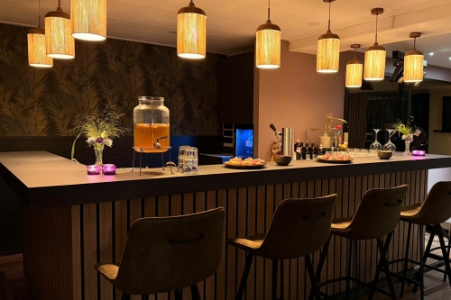 Onze vernieuwde bar biedt plaats voor wel 13 personen. Hier tap je nu zelf je biertje. Er is genoeg op voorraad. Gezelligheid gegarandeerd!